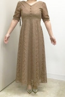 サテンドッキングオケージョンレースドレス ベージュ/S