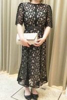 結婚式や二次会、同窓会などオケージョンシーンに季節を問わず着られる袖ありのレースドレス。