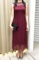 襟付きケミカルライクレースフレアドレス ワインレッド/S