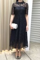 襟付きケミカルライクレースフレアドレス ネイビー/S