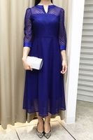 襟付きケミカルライクレースフレアドレス ネイビー/S
