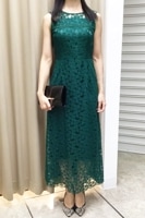 大人の女性に似合うシンプル×フォーマルなドレス。 長めの丈感でフォーマルながらも、デコルテの透け感と裾のスカラップで程よい抜け感があり、長めの丈でも重くならないのがポイントです。 しなやかな大人っぽいシルエットになるよう、あえてギャザーは入れず緩やかなラインで肉感を削ぎ落し、ほっそり華奢な印象に。 羽織ものの合わせ方で違った表情を見せられるのもポイントで、オケージョンにはボレロやストールを合わせて女性らしく、ジャケットを合わせればお子様の卒入学等のセレモニーシーンにもぴったりです。